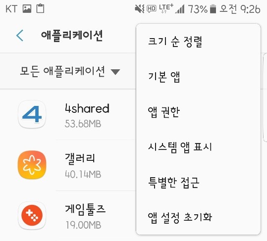 그러면 팝업창이 위와 같이 뜨는데, 거기서 "시스템 앱 표시" 항목을 클릭한다.